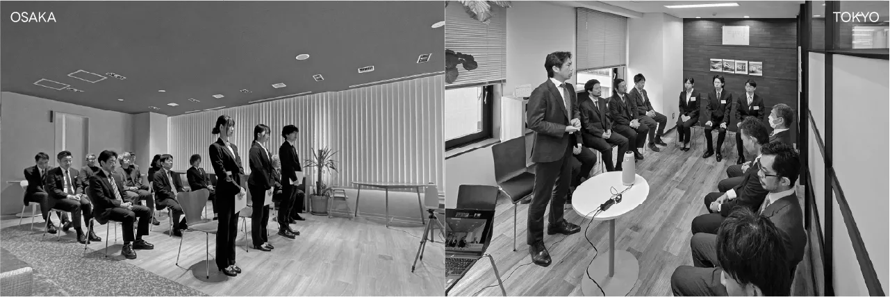 2026年4月1日、当社では本年度の入社式を執り行い、新たに大阪事務所3名、東京事務所3名の新入社員を迎えました。